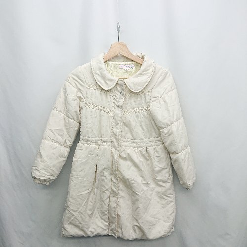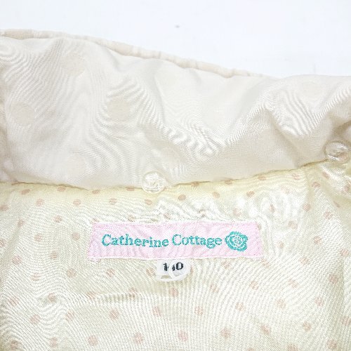 ■ ⊇ CATHERINE COTTAGE レース装飾 ロゴ刺? キッズ 長袖 ダウンコート サイズ140 アイボリー系 女の子 E