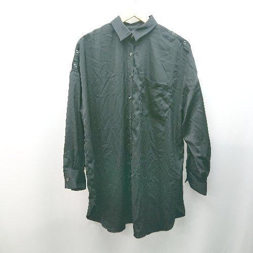 ◇ PAGEBOY ページボーイ フロントボタン ロング丈 ビックシルエット 長袖 シャツ サイズF ブラック レディース E