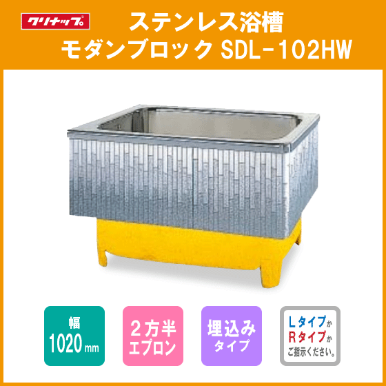 ステンレス浴槽 幅 102cm 埋込式 2方半エプロン SDL-102HWL,SDL-102HWR クリナップ ★
