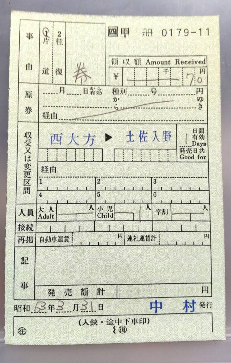 DEA35   □JR 四国・出補 第3弾□  中村線 【  中村 駅  国鉄地紋 裏面案内4項目 】