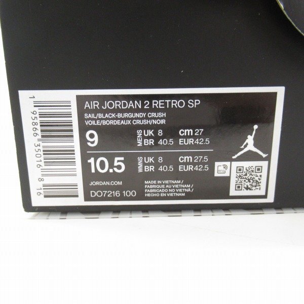 | NIKE×A Ma Maniere/ナイキ×ア マ マニエール AIR JORDAN 2 Airness/エアジョーダン2 エアネス DO7216-100/27 /080 | |||||||||||||||||||||||||