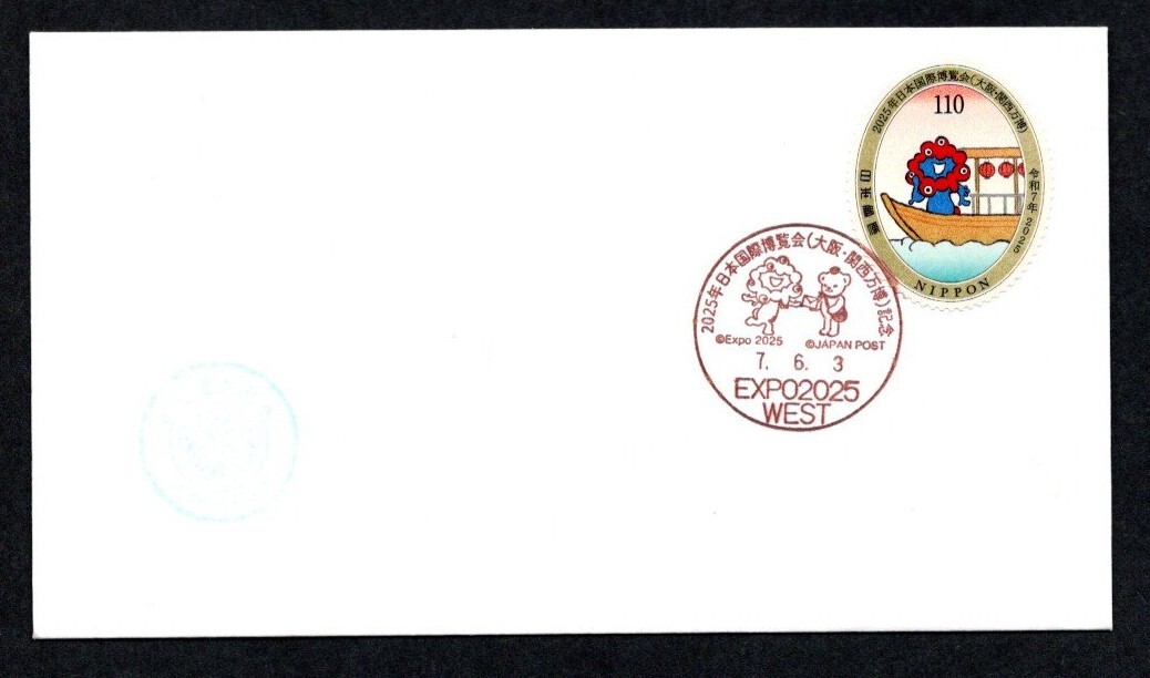 大阪・関西万博パビリオンスタンプカバーです。万博記念切手に10/7ウェスト局の小型印を押し、左下にルワンダ館のシャチハタ式の公式パビリオンスタンプを押した記念カバーです。 宛名スタンプを押した実逓便ですが、宛先はマスキングしています。他にも各国のパビリオンスタンプカバー出品中です。