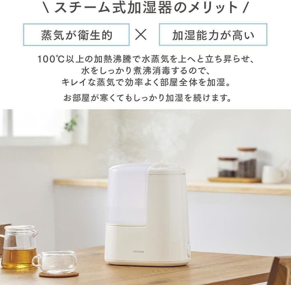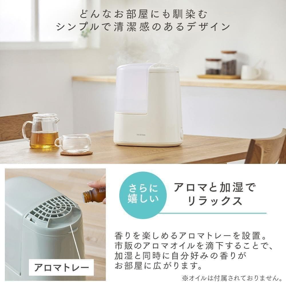 コンパクト×清潔加湿。アロマ対応のスチーム式加湿器です