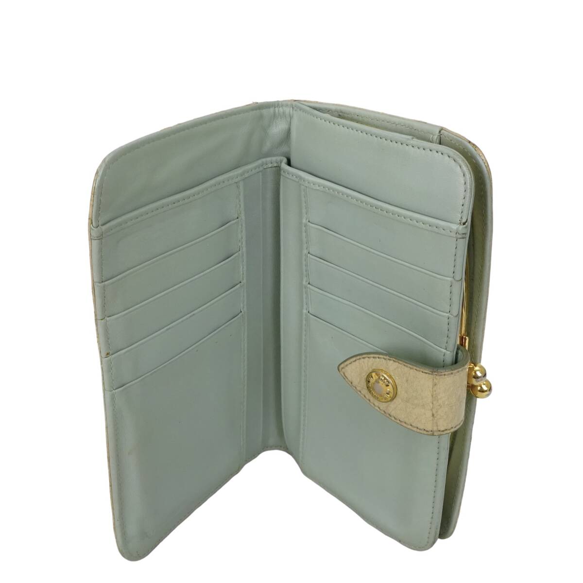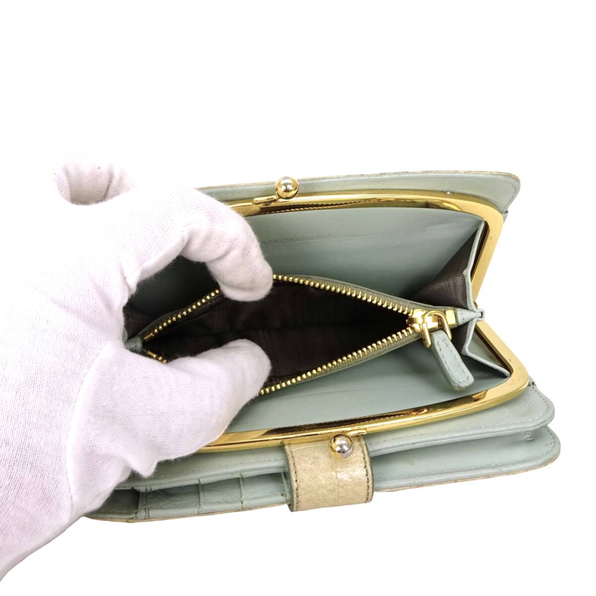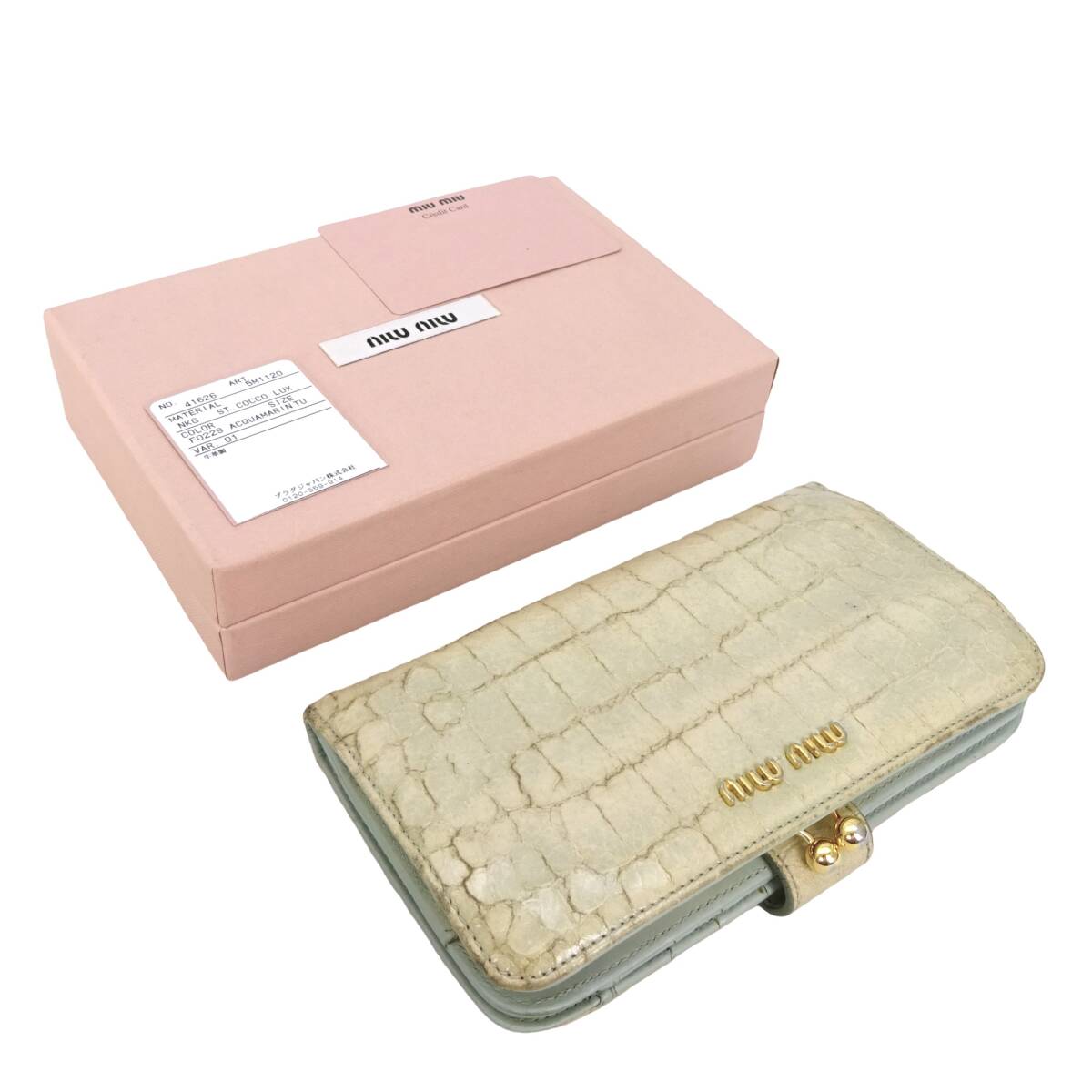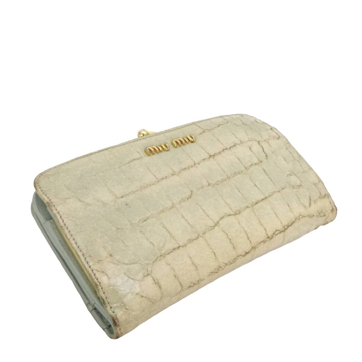 本物 ■ミュウミュウ■フレンチパース ウォレット クロコ エンボス ブルーベージュ ゴールド がま口財布 /833801