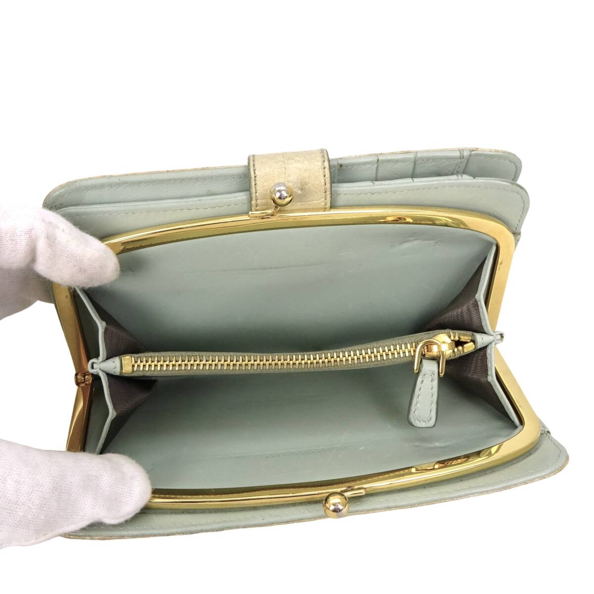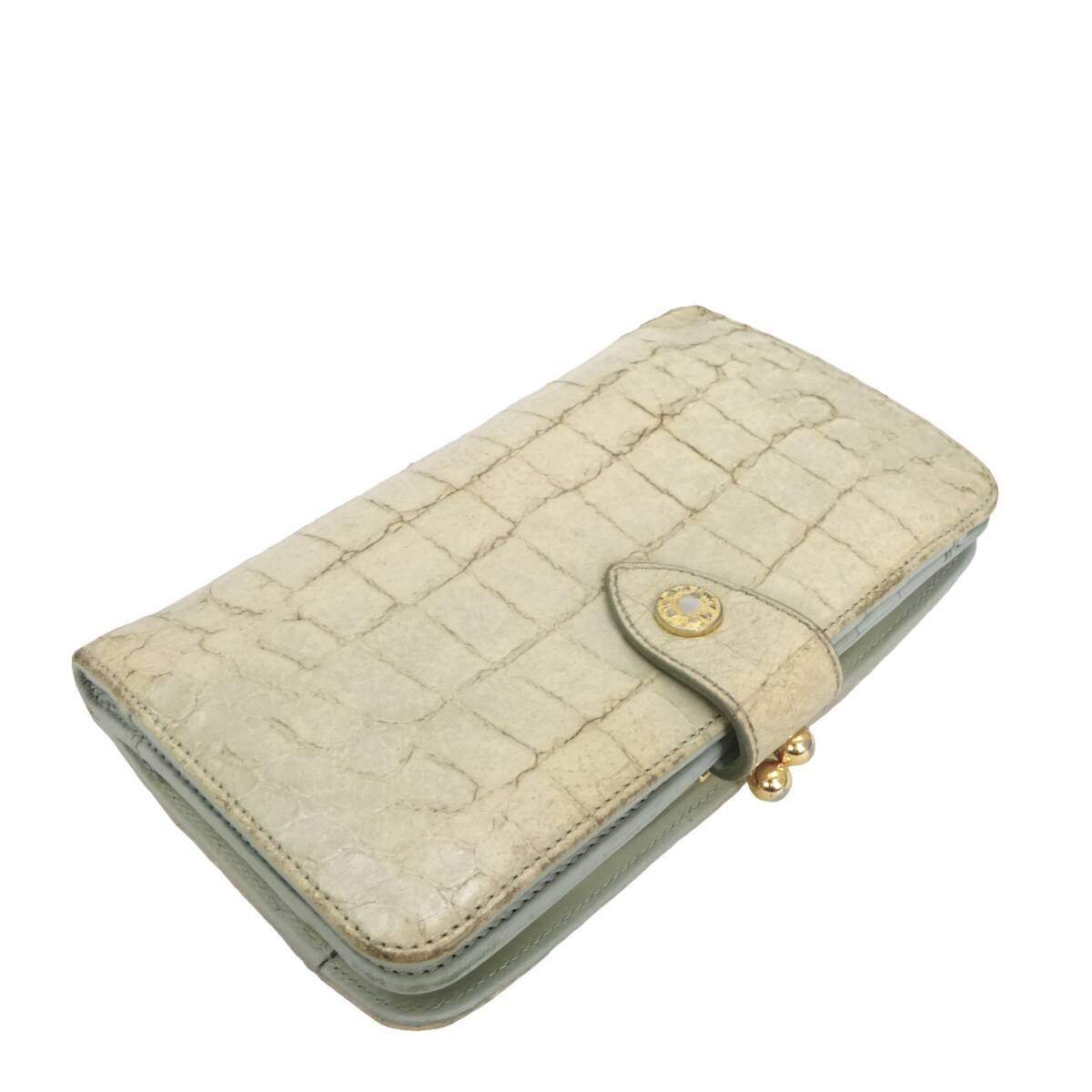商品の種類 ■ フレンチパース ウォレット クロコ エンボス ブルーベージュ ゴールド がま口財布