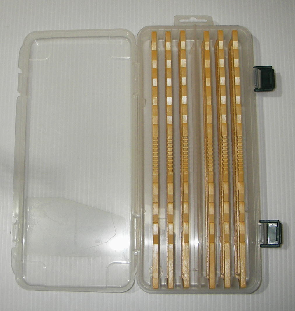 メイホー 仕掛巻 ストッカー8号 4個 中古品です。 ケースサイズ:横13.1cm、縦27.5cm、厚み4.5cm、仕掛巻サイズは24cmです。 仕掛巻は1ケースに6本入りです。 4個ともに使用済みの中古品です。 汚れ・スリキズ等がございます。 劣化等、他にも気付かない点があるかもしれません。