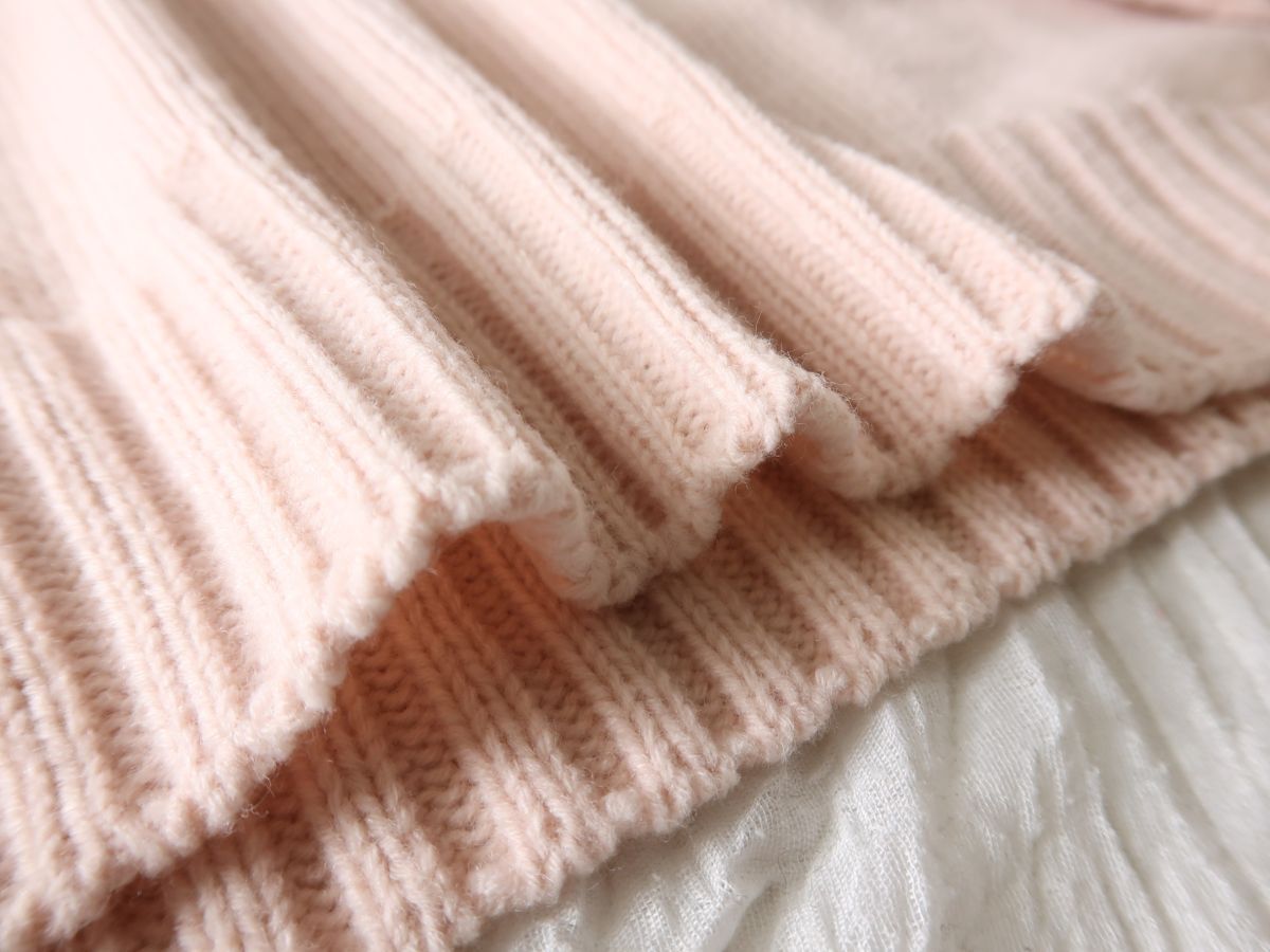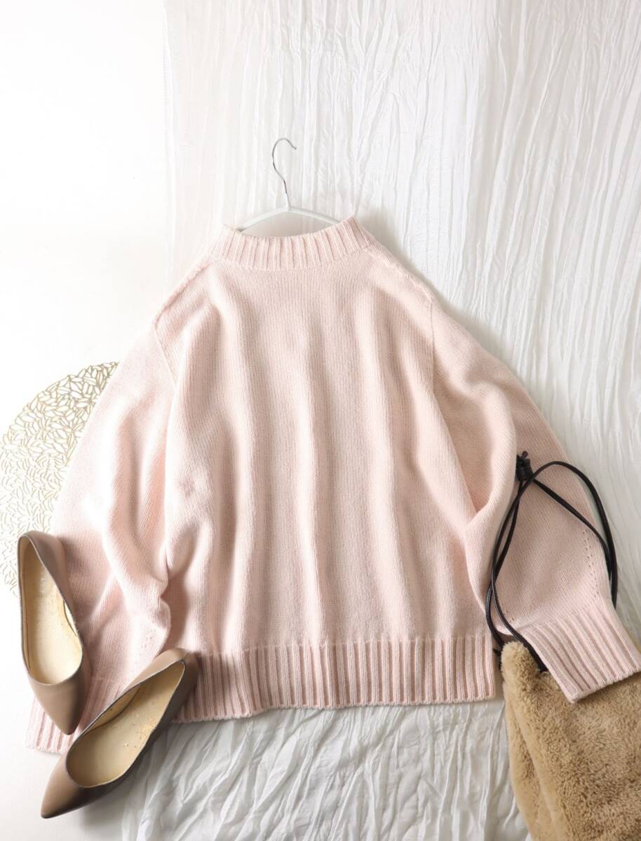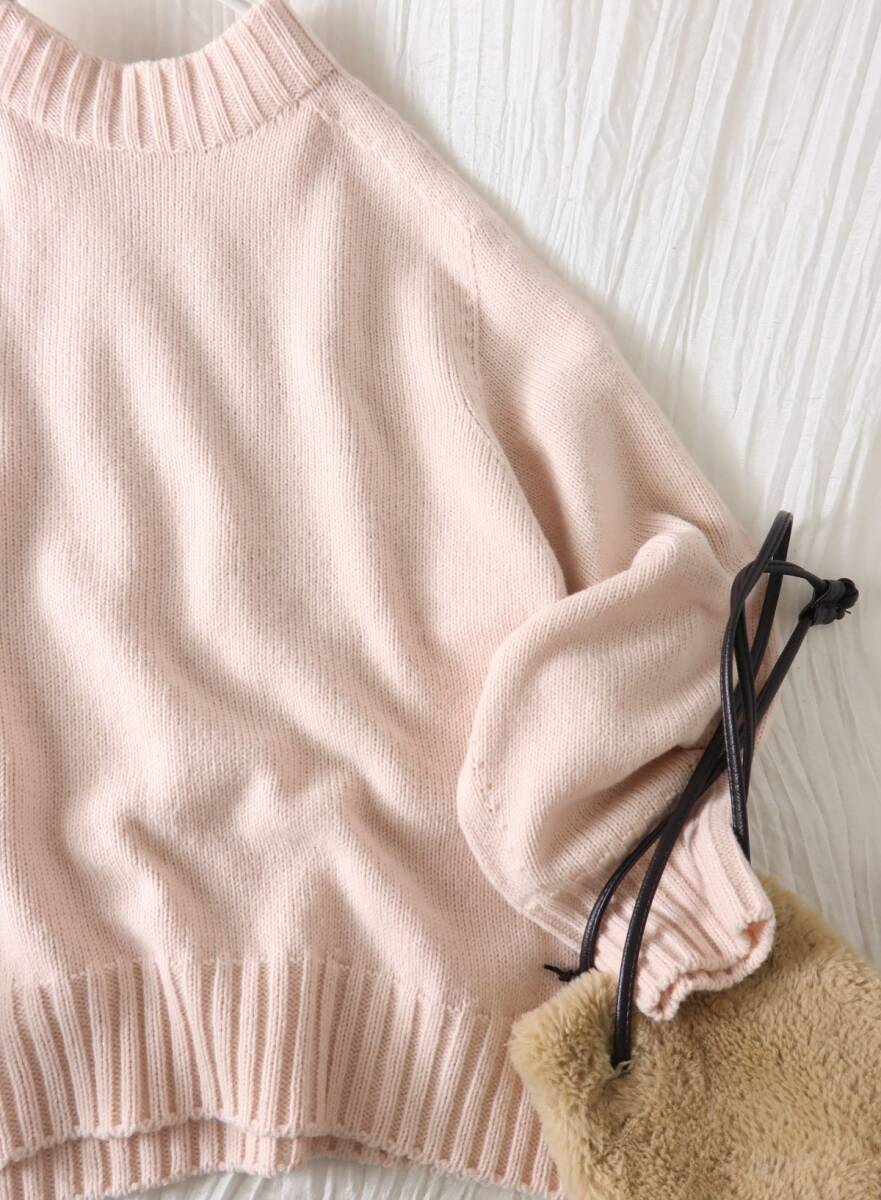 スカートやワイドパンツとのバランスが決まりやすいニットです。インナーにシャツやカットソーを合わせてレイヤードスタイルも楽しめます。