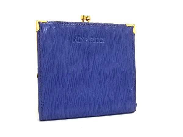 ■美品■ NINA RICCI ニナリッチ レザー 二つ折り がま口 財布 ウォレット 札入れ 小銭入れ レディース パープル系 DH8776