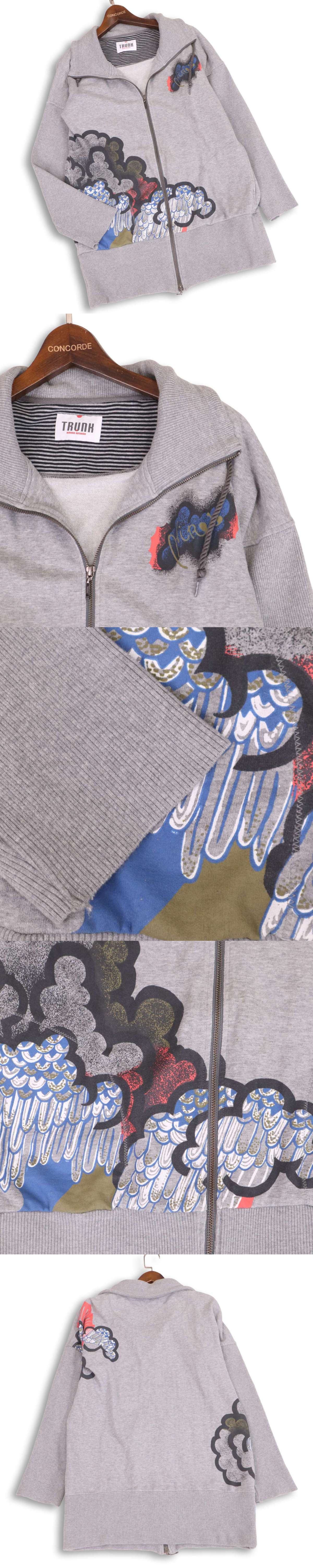 TRUNK HIROKO KOSHINO ヒロココシノ 通年★ 雲柄 アート プリント スウェット ジャケット ブルゾン Sz.40 レディース グレー