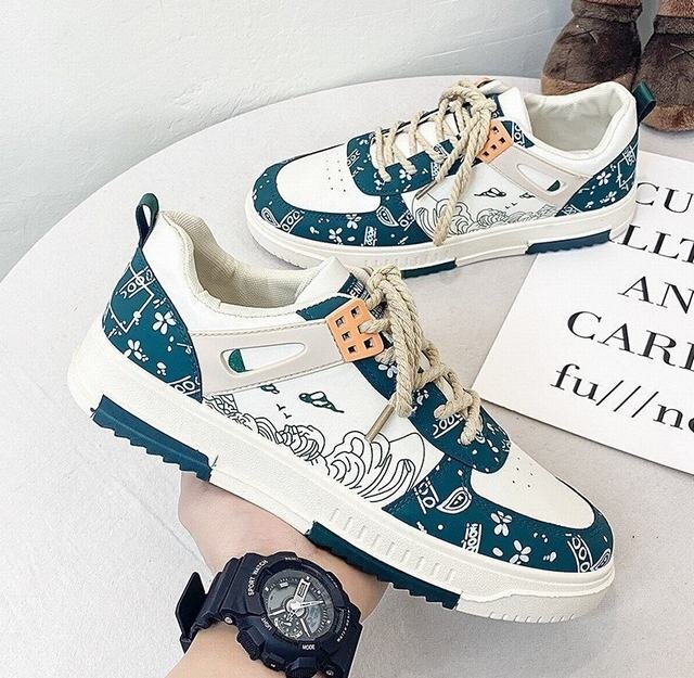 スケーボーシューズ スリッポン スニーカー メンズ シューズ  ぺたんこ カジュアル 歩きやすい レースアップ 新作 グリーン26.5cm