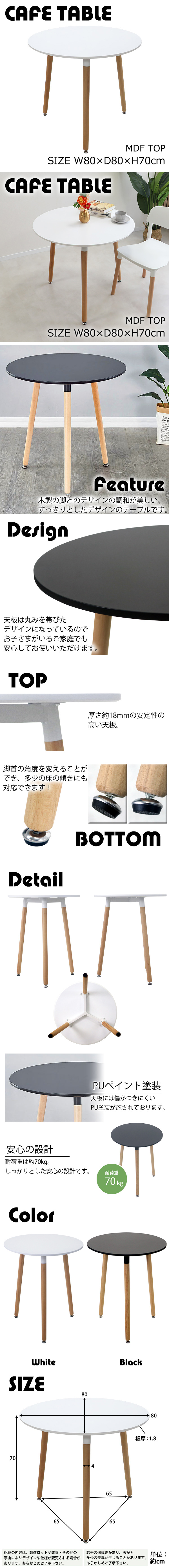 | 商品名 | 送料無料 カフェテーブル ダイニングテーブル 直径約80cm 高さ約70cm おしゃれ 丸 丸形テーブル 丸テーブル ラウンドテーブル 円形 イームズテーブル ティーテーブル センターテーブル 木製脚 MDF 3本脚 北欧 一人暮らし 組み立て簡単 1人 2人 3人用 dtabled22 |