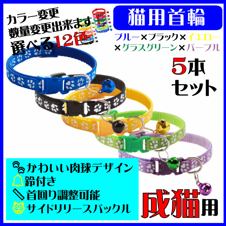 | ★☆(C75-4) 猫の首輪 成猫用 肉球のデザインが可愛い猫用首輪【5本セット】☆★ | |