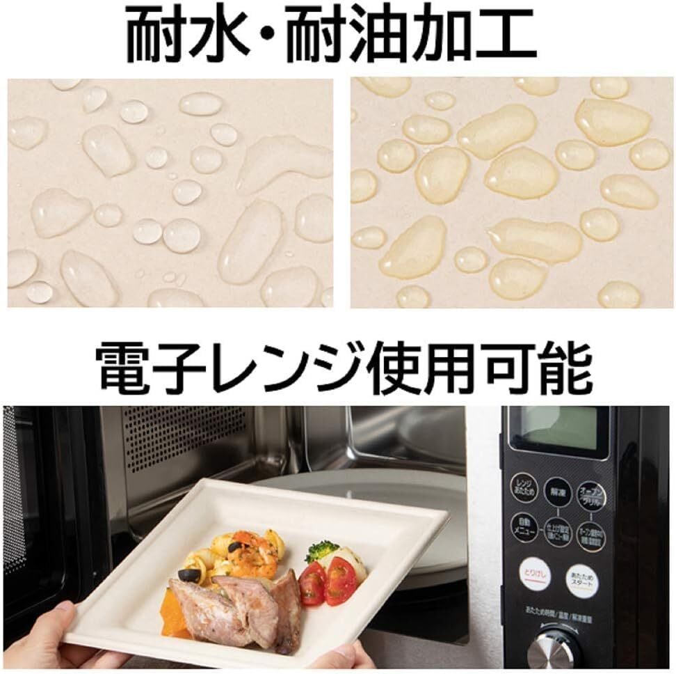 説明 ●環境に配慮したバガス(サトウキビ繊維)を使用しています。 ●非木材パルプの未晒しで、ナチュラルな風合いです。 ●電子レンジOK (オーブン不可) 耐水・耐油加工あり。 ●イベントや屋台、テイクアウト用として最適な業務用パック。