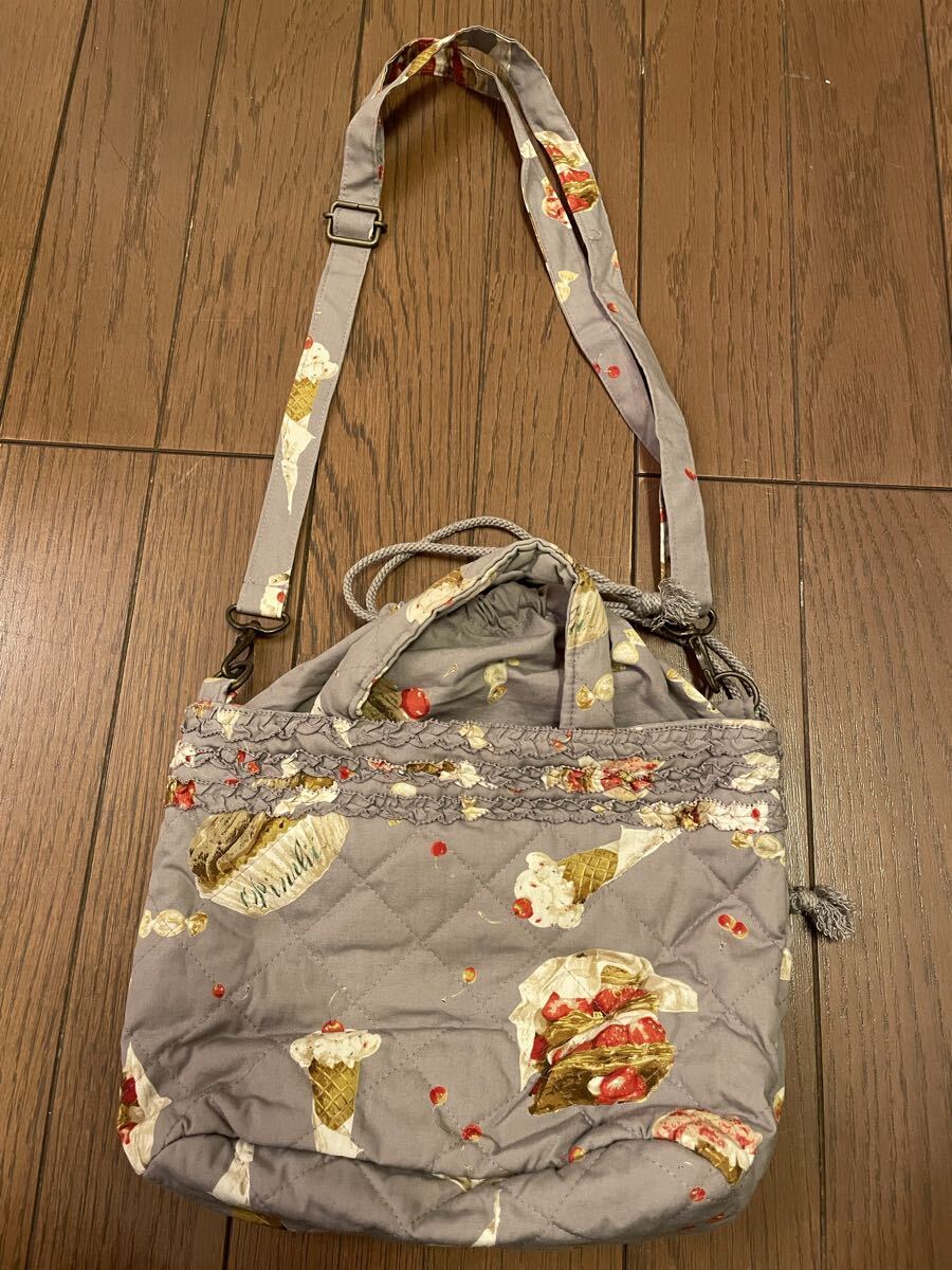 ワンダフルワールド、スイーツ柄のポシェットです。