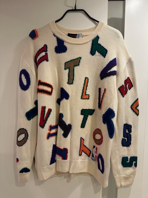 ルイヴィトン NBAコラボ マルチロゴ レタリング ニット セーター 長袖 XXL ホワイト メンズ 中古 ヴァージルアブロー LOUIS VUITTON