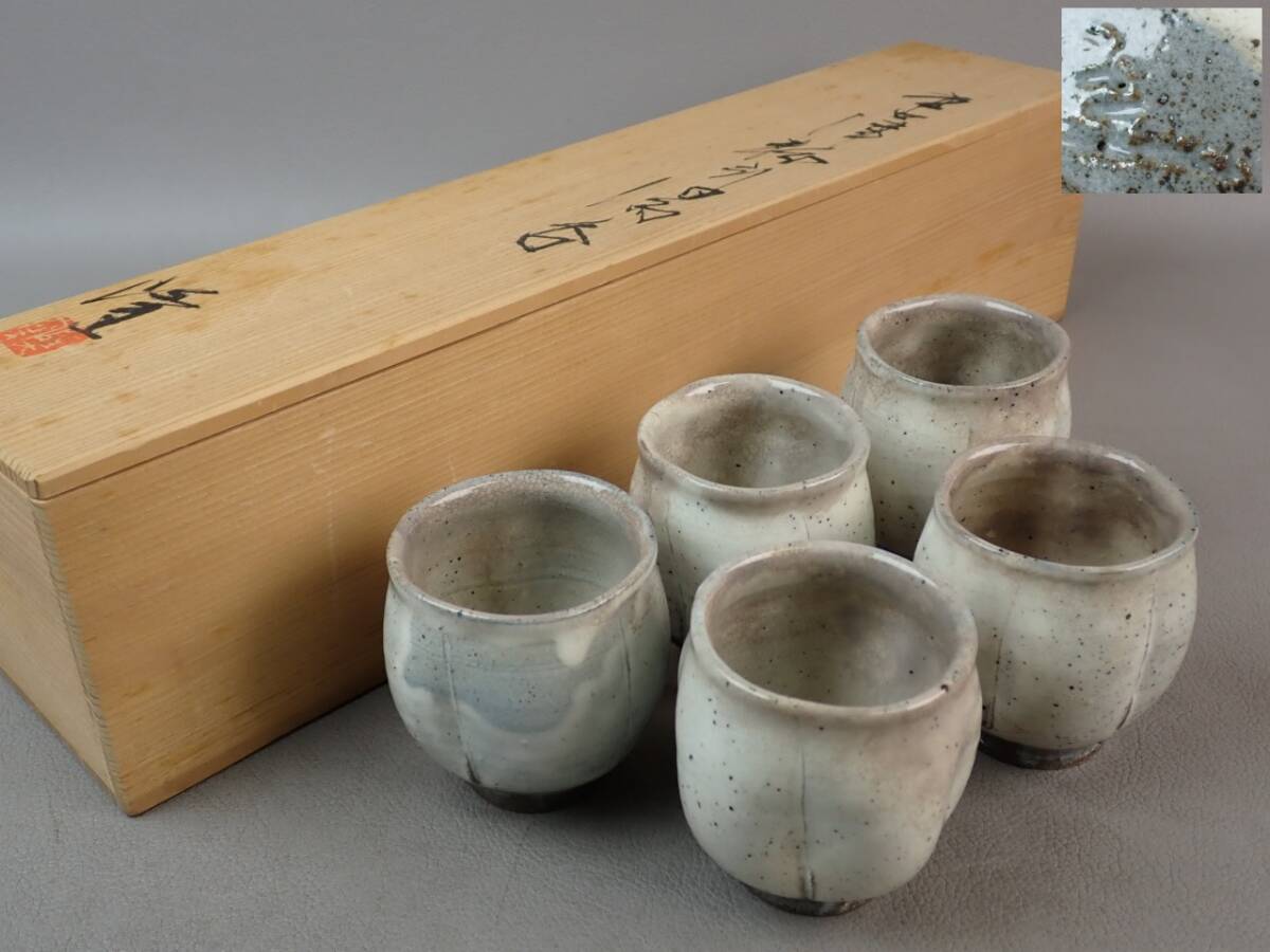 中里隆、唐津粉引湯呑、5客、共箱です。