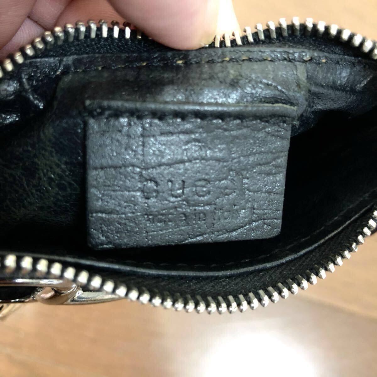 GUCCI グッチ コインケース アクセサリーポーチ 財布 チェーンウォレット GGキャンバス レザー ホースビット シルバー金具 キーホルダー 黒