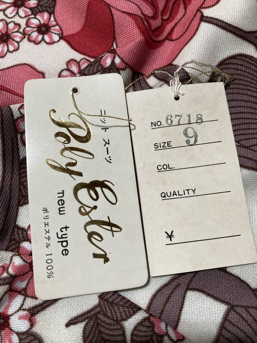 おそらく1970年代のものだと思われます。9というサイズ表記がありますが、現在の一般的な9号サイズの婦人服より若干小さめな感じがします。
