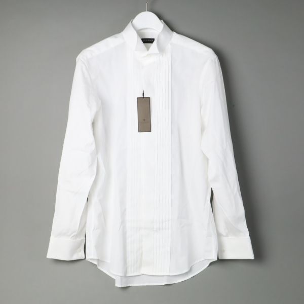 | ** ブランド:gotairiku / 五大陸 ** 素材:綿100% ** 状態: 新品 未使用 ** 色:ホワイト系 ** 表示サイズ:41/86(16) ** 実寸サイズ(単位cm) ※多少の誤差はご了承ください: 肩幅47 身幅55.5着丈79袖丈62 ** 定価:24,200円 ** 品番: HDFQGW0103 ** 商品説明: 「ジャパニーズ・ジェントルマン・スタンダード」 を提唱するブランド、五大陸。 五大陸のフォーマルウェアライン「WEAR BLACK」 のウィングカラーシャツです。胸元の細やかな プリーツが華やかで、タキシードに合わせたときに とても美しく映えるデザインです。 前立ては比翼仕立てになっており、ボタンが隠れる ことでより上品な印象に。蝶ネクタイやボウタイを合わせると、 ぐっとフォーマルな雰囲気が高まります。 結婚式、パーティー、式典など、特別な場にぴったりの一枚です。 148-ee-WD-[ewye-w] ◆ その他: ・オークション出品のため、キャンセルや 返品は お受け出来ないことをご了承ください。 もし、 どうしても返品をご希望される場合は、 落札に より発生する落札手数料および送料を ご負担 ください。 (※未使用の場合に限ります) ・まれにヤフオク出品の際の撮影中や保管中 に自然についた微スレ、微キズ程度が 生じる 場合があることをご了承ください。 (事前に生じたダメージ等については、 必ず 説明文中に記載するようにしております) ご不明な点はご入札前にご質問ください。 | ||