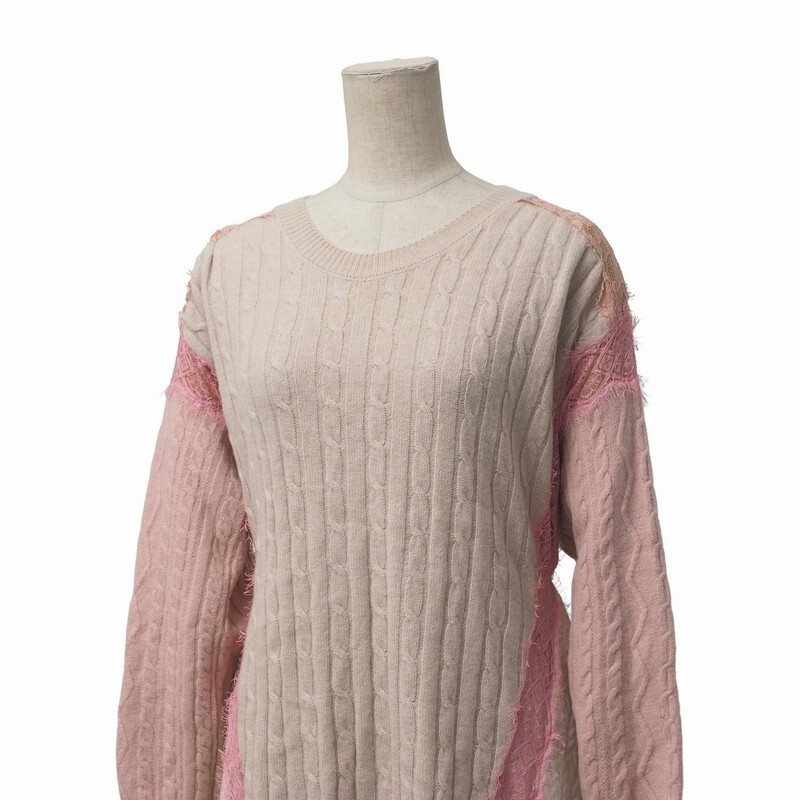 | MI4449〇イタリア製*ステラマッカートニー*レース切替 ケーブル ニット セーター*サイズ38*ピンク×ベージュ×アイボリー系 | |||