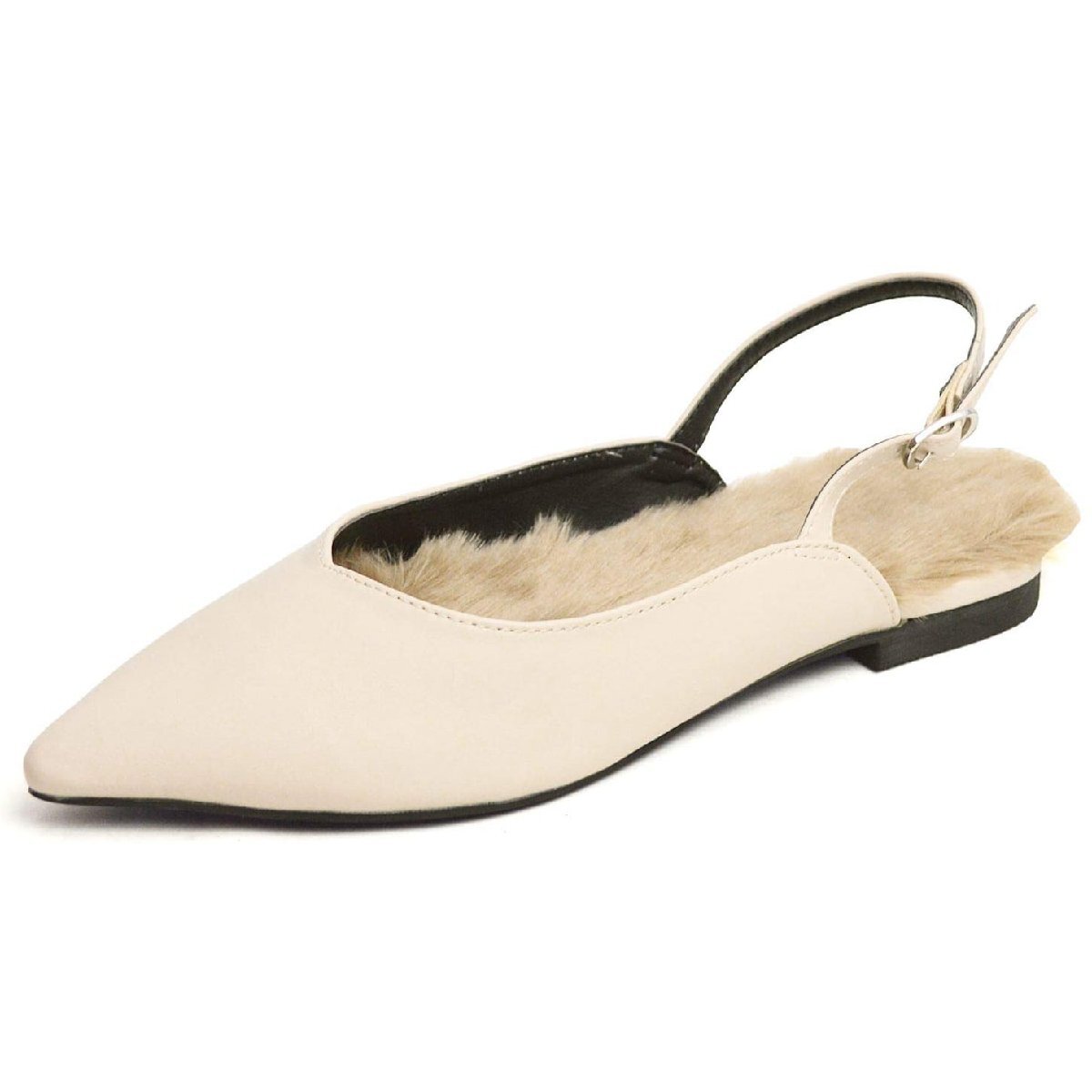 レディース フラット パンプス ふわふわ ファー ストラップ付 ポインテッドトゥ サンダル ぺたんこ カジュアル 大人 靴 9380