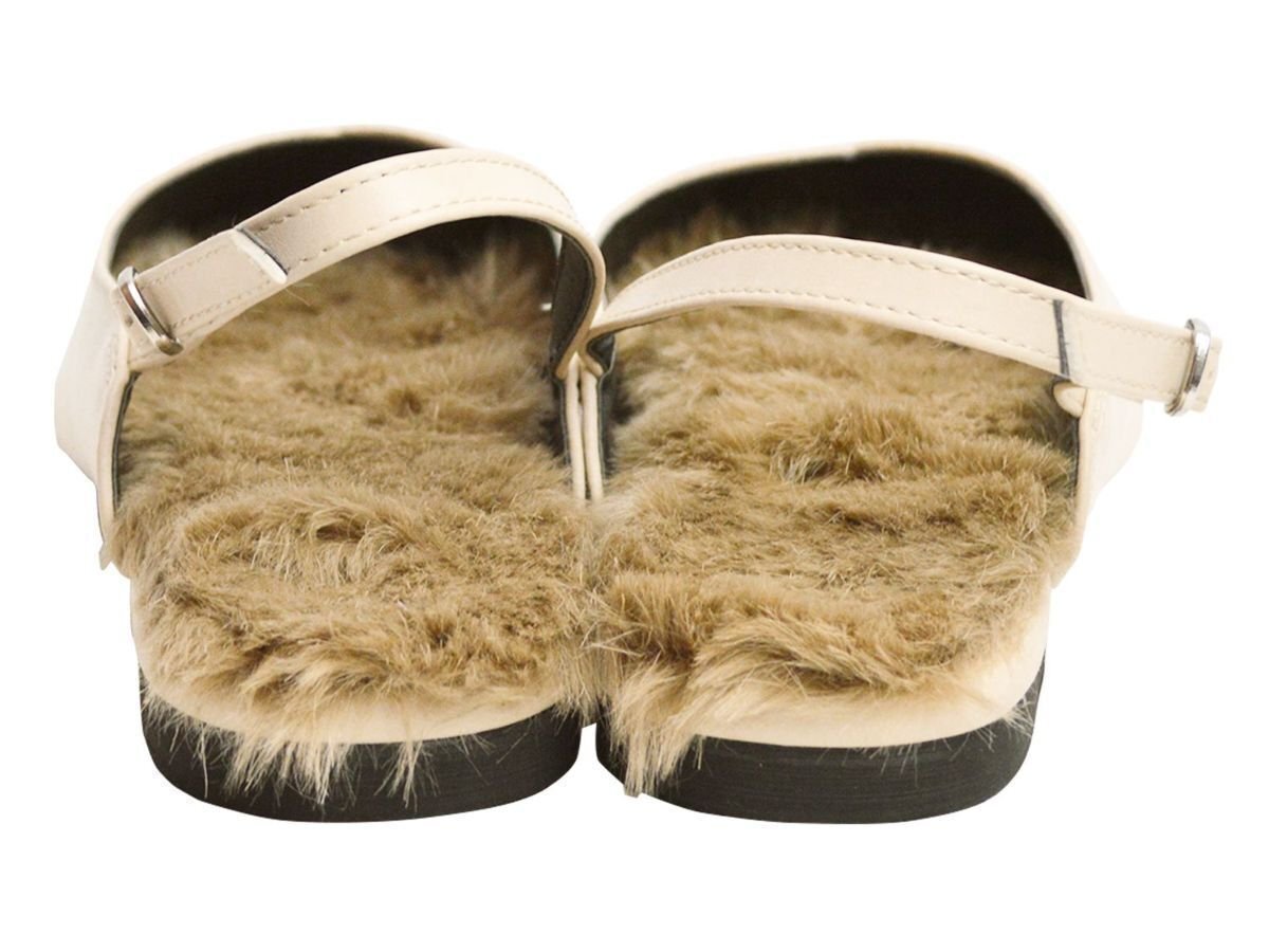在庫処分■新品【23~23.5cm】レディース フラット パンプス ファー ストラップ付 ポインテッドトゥ サンダル カジュアル 靴【エコ配送】