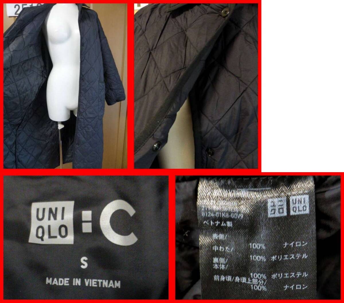 送料無料★ユニクロ・パフテックオーバーサイズコートS ブラック 軽くて暖かい東レの高機能中綿 撥水 クレア・ワイト・ケラー UNIQLO