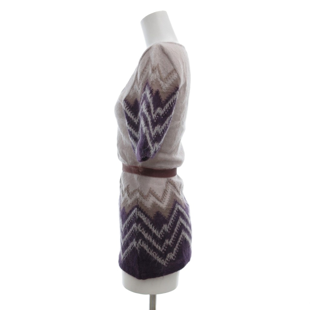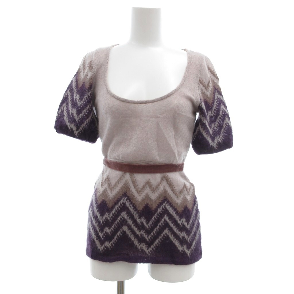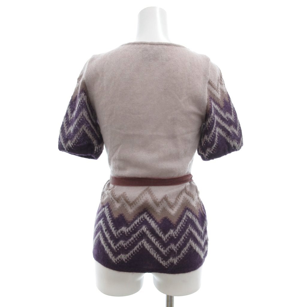 パオラフラーニ PAOLA FRANI ニット セーター モヘヤ 半袖 ラウンドネック ギザギザ模様 40 紫 パープル ピンクベージュ /JS