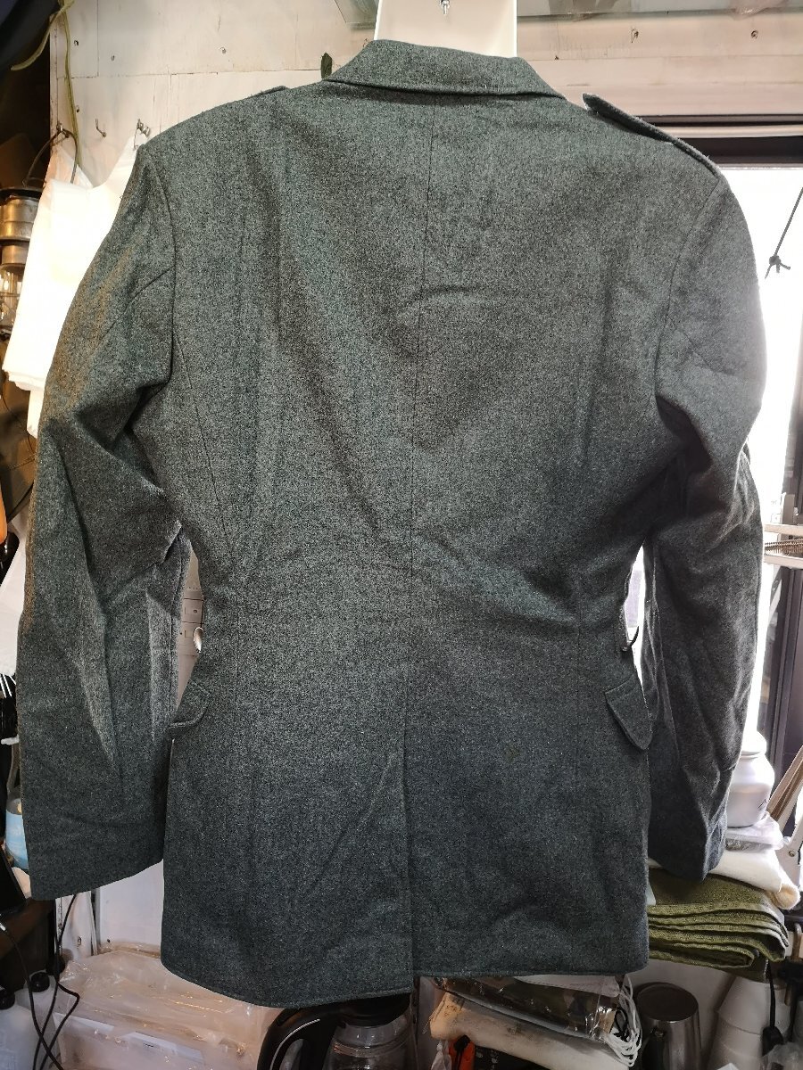 80年代頃に着用されていたスイス軍ユニフォームウールジャケットです。スイス軍に多く見られるオリーブとグレーを混ぜたような独特のカラーです。目の詰まったウールが使用されています。 ユーズド?でワッペンのはがし跡などあります。 サイズ表示は100Aで着丈が77センチ程度、身幅52センチ、肩幅47センチ、袖63センチ程度でメンズLサイズ程度です。 沖縄離島を除く全国500円でお送りいたします、落札価格にプラスでお願いいたします。
