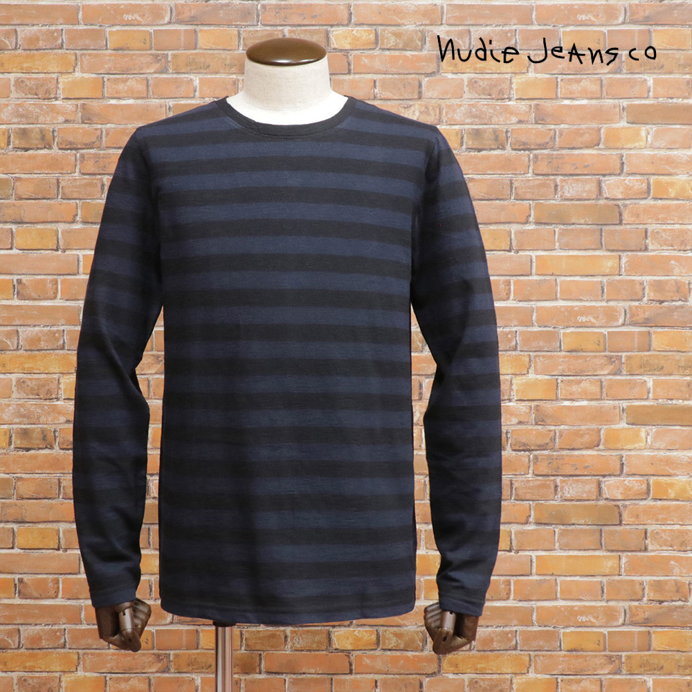 1円/Nudie Jeans/XSサイズ/長袖Tシャツ ORVAR BROCK STRIPE ボーダー オーガニック ヌーディージーンズ 新品/紺/ネイビー/me218/