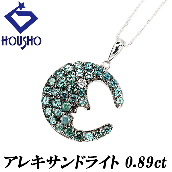 商品名 アレキサンドライト ネックレス ダイヤモンド K18ホワイトゴールド 三日月 ムーン パヴェ