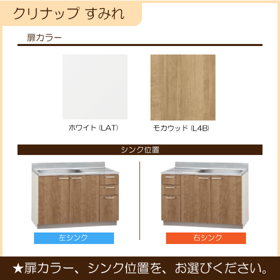 ■ 水槽(シンク)位置は、『右シンク』か『左シンク』より選べます。