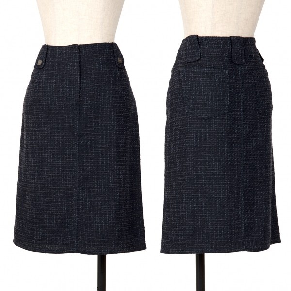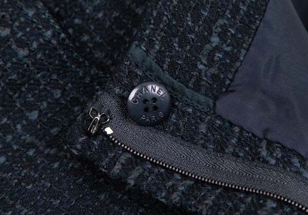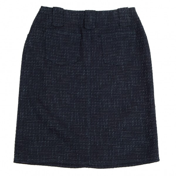 | シャネルCHANEL メタルプレートツィードスカート 紺40 |