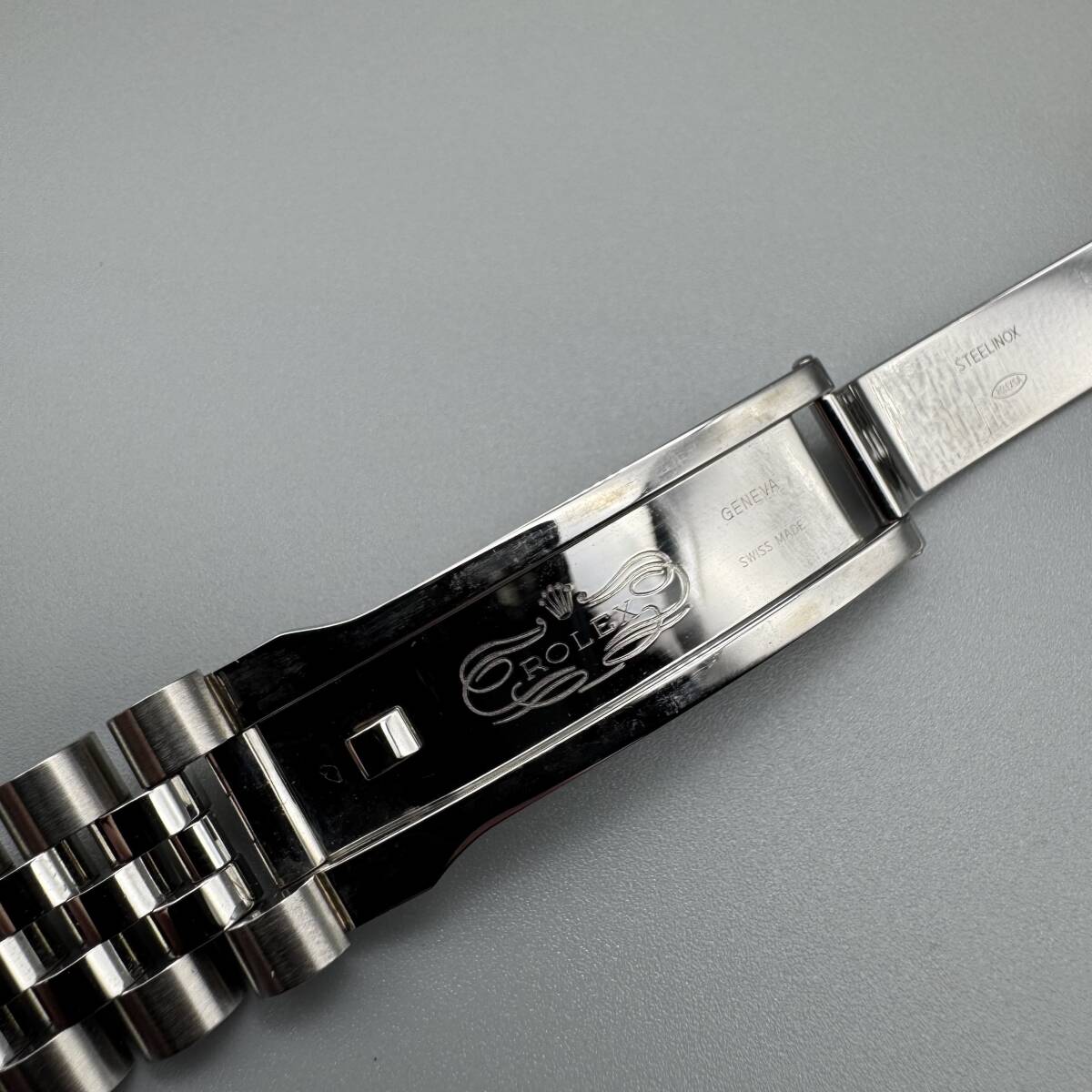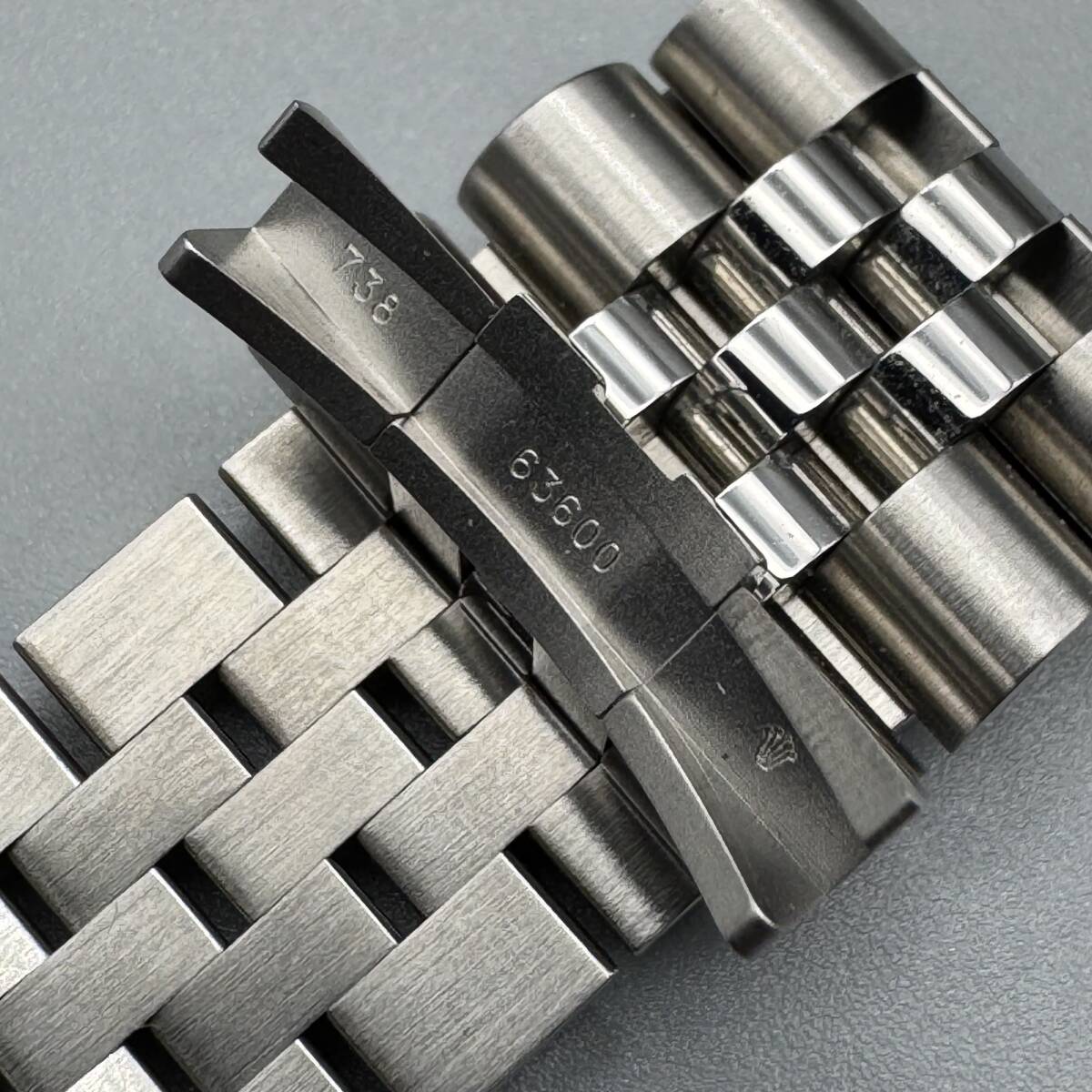 Rolex純正ジュビリーブレス63600の出品です。116234より取り外し品です。ラグ幅20mmのデイトジャスト、デイトナ、GMTマスター等に装着可能です。目立つ傷やヨレも無く、まだまだご愛用頂けるコンディションです。即決価格で出品致しますのでこの機会に是非ご検討下さい。