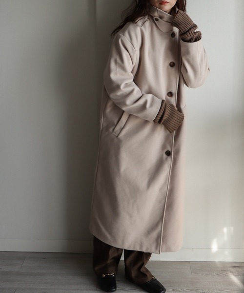 キーワード:ステンカラーコート コート レディース ロング丈 無地 秋 冬