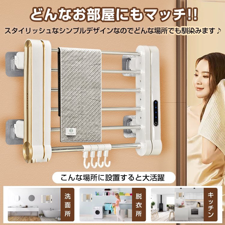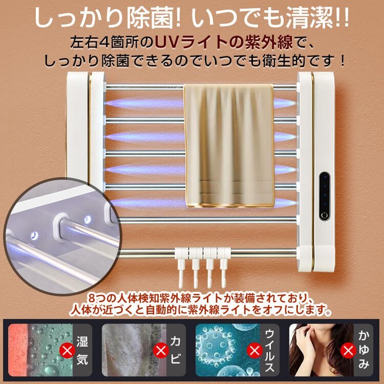 1円 タオル掛け 洗面所 おしゃれ トイレ キッチン 壁 ヒーター 脱衣所 お風呂場 暖房 タオル ウォーマー ハンガー 乾燥 UV 清潔 冬 ny576