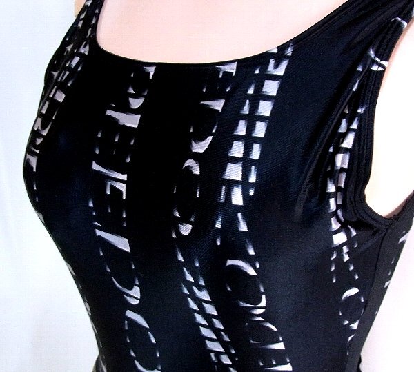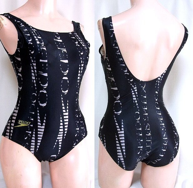 ★☆SPEEDO ロゴデザイン柄つるつる黒スポーツ水着☆★