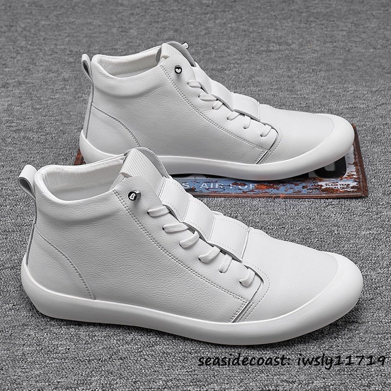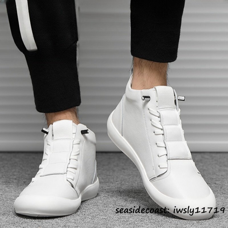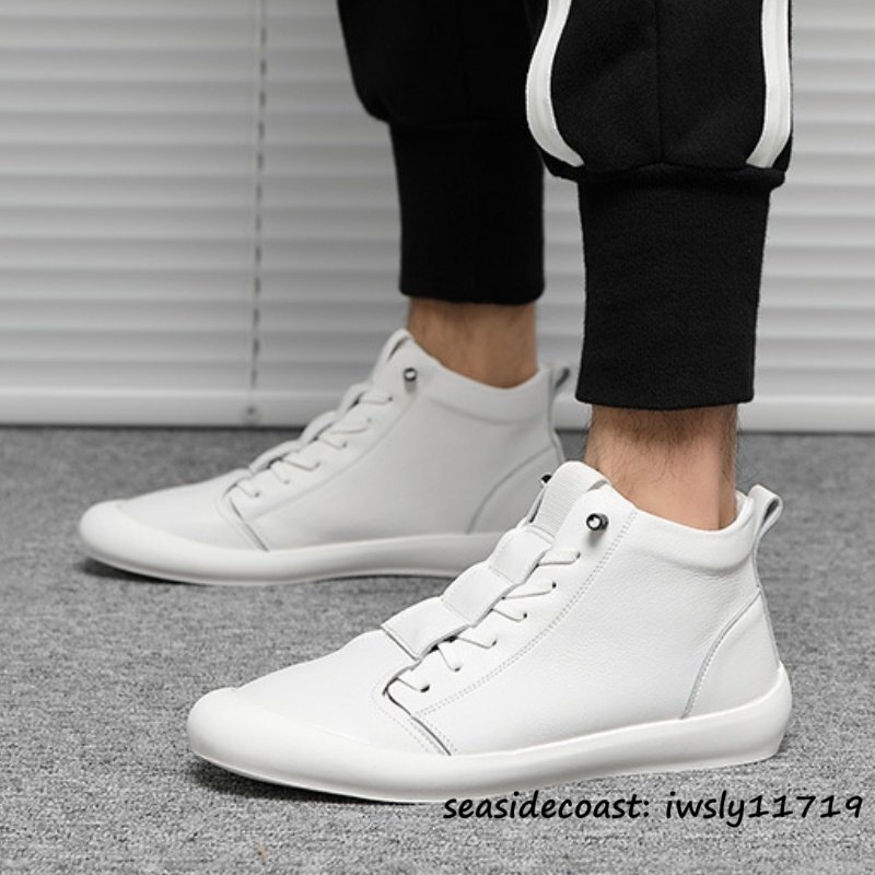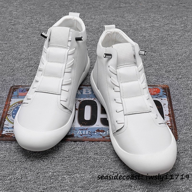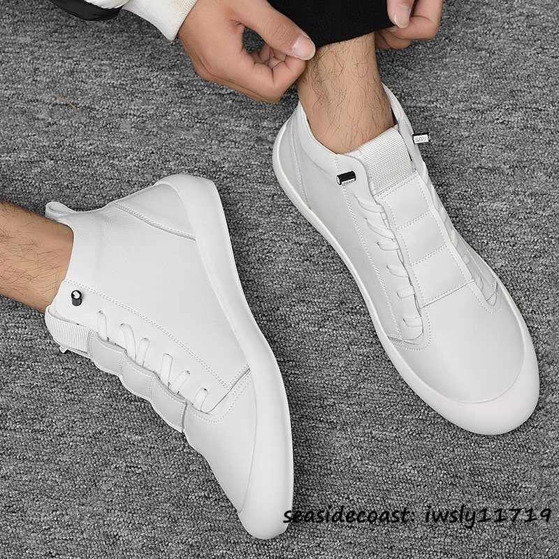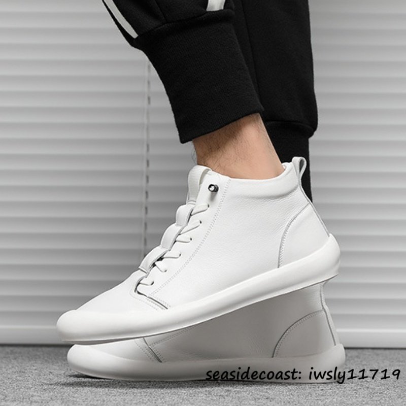 スニーカー 牛革 ショートブーツ 5cm身長アップ 新品 メンズシューズ 本革 レザーシューズ 滑り止め 白靴 カジュアル 無地 お洒落 26.5cm