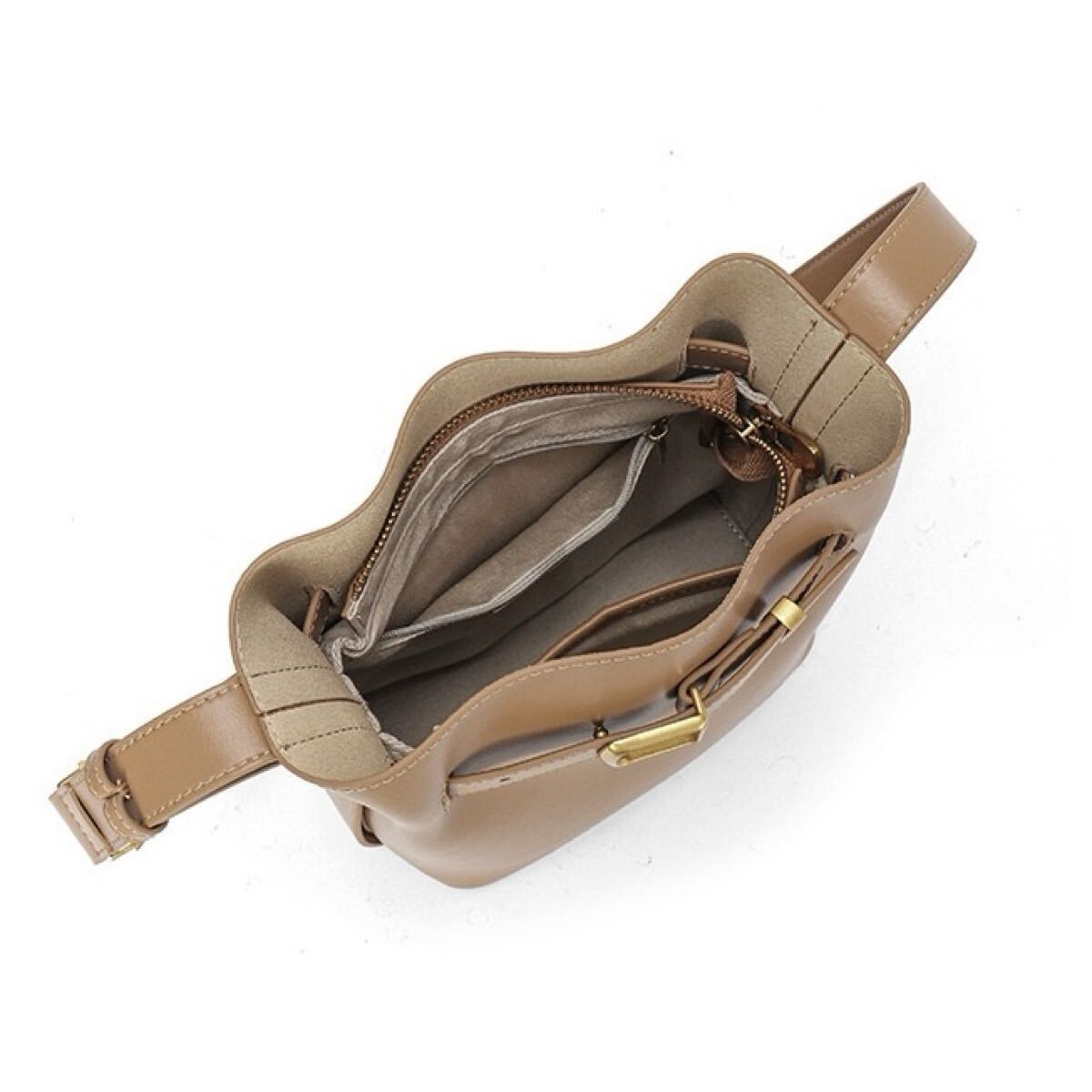 旅行に持っていくバッグとして作られた背景もあって、防犯を意識してマグネット留めを身体側にしているのもポイント。フタが目隠しになるので外から中を覗きづらくなっています。