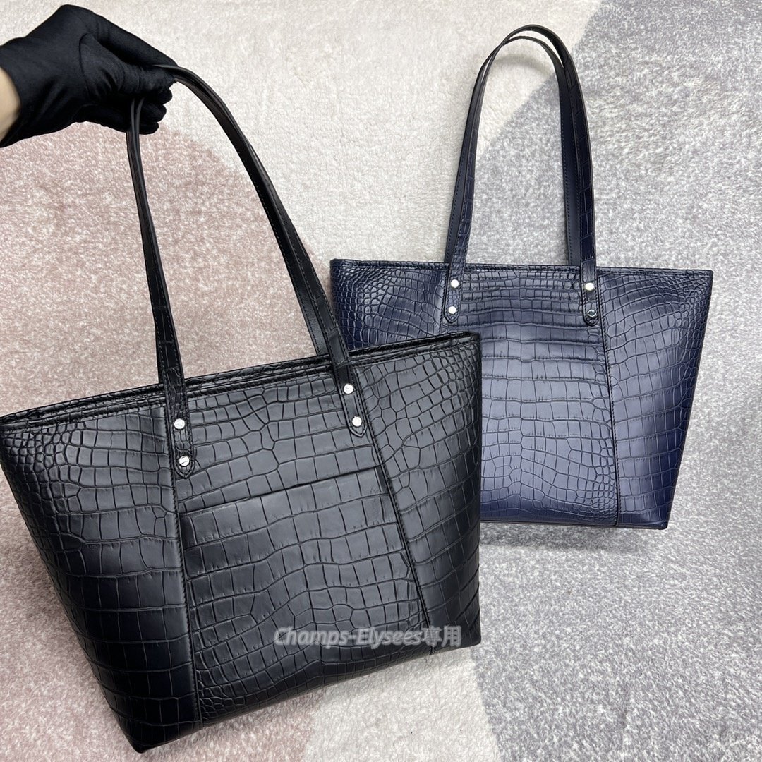 ハイセンス トートバッグ 鰐革 腹革センター取り マット加工 クロコダイルレザー レディースバッグ ハンドバッグ 肩掛け 紺
