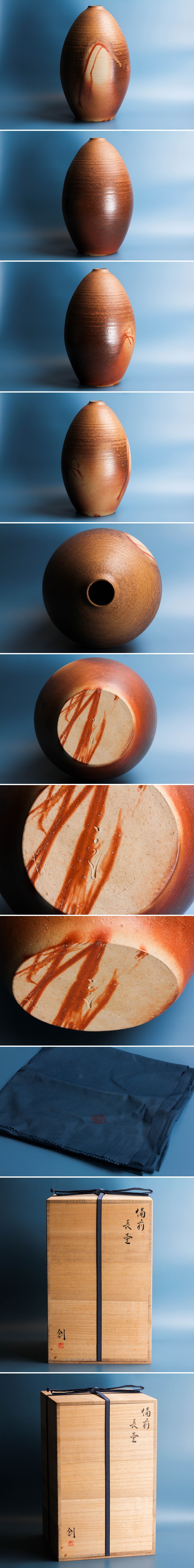 高さ40cmの大型作品 伊勢崎創 備前長壷 共箱 共布 本物保証