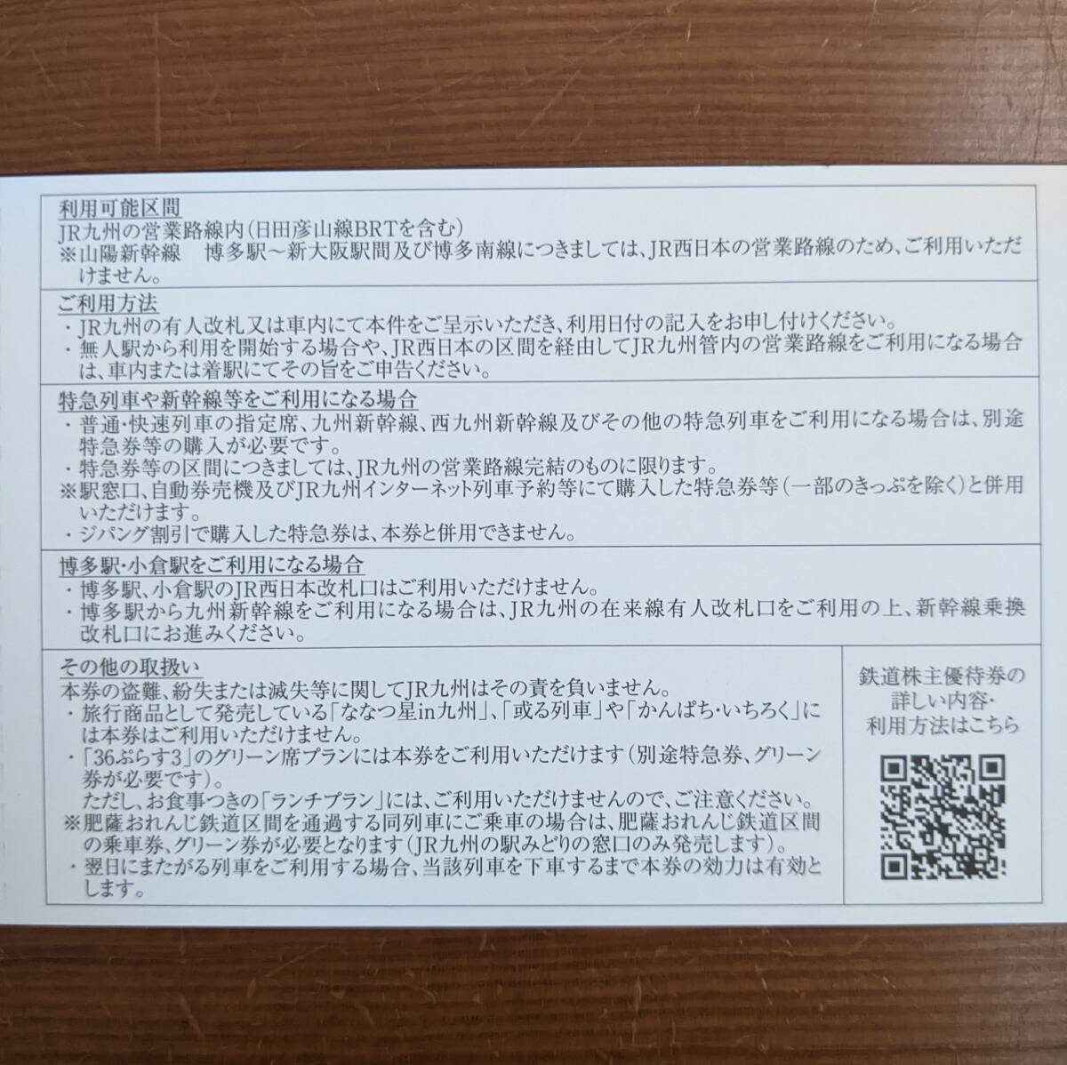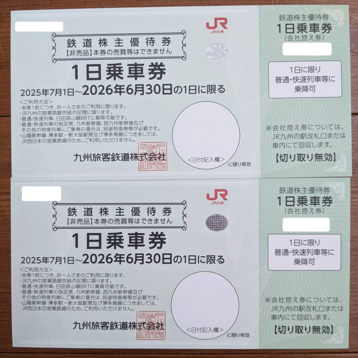 【JR九州】株主優待券 1日乗車券2枚 (2026年6月30日まで)