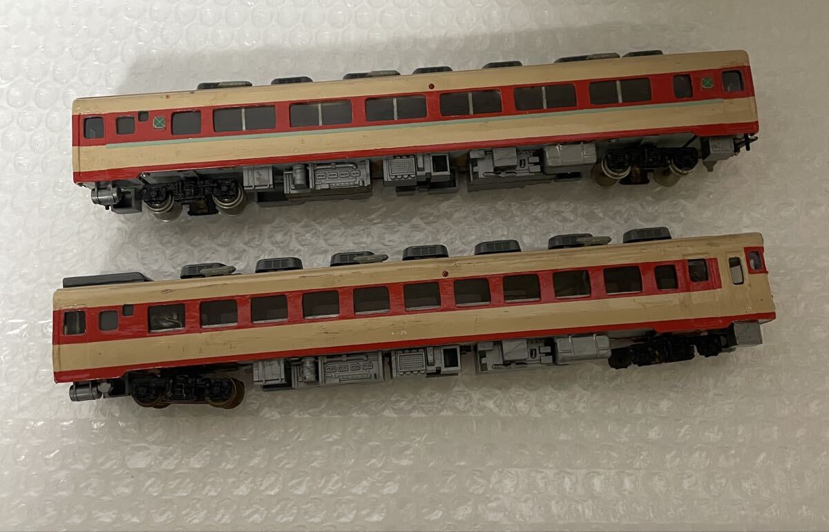 1円~ HOゲージ 国鉄 特急形電車 急行表示 クリーム赤 2両 一部金属ボディ 昭和模型 ジャンク現状品