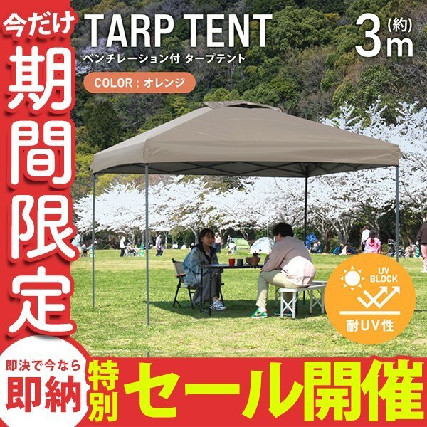 | 強い日差しでもこの3m×3mのタープテントは快適な日陰を作ってくれます! |