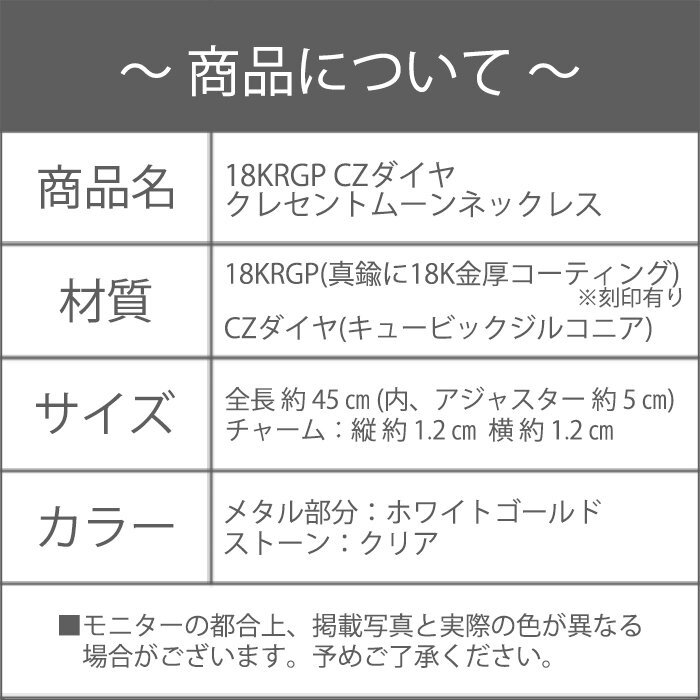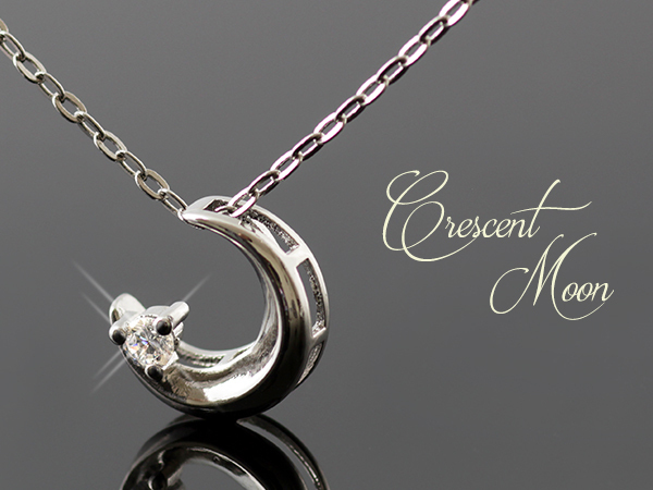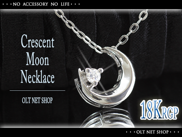 新品/ネックレス/18KRGP/月/ムーン/ジルコニア/レディース/シルバー/18金/18K/ホワイトゴールド/チェーン/シンプル/上品/女性/ダイヤ/CZ