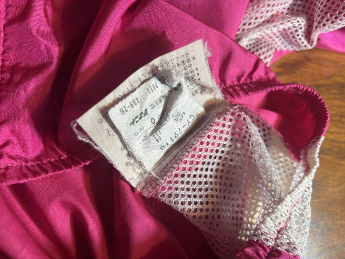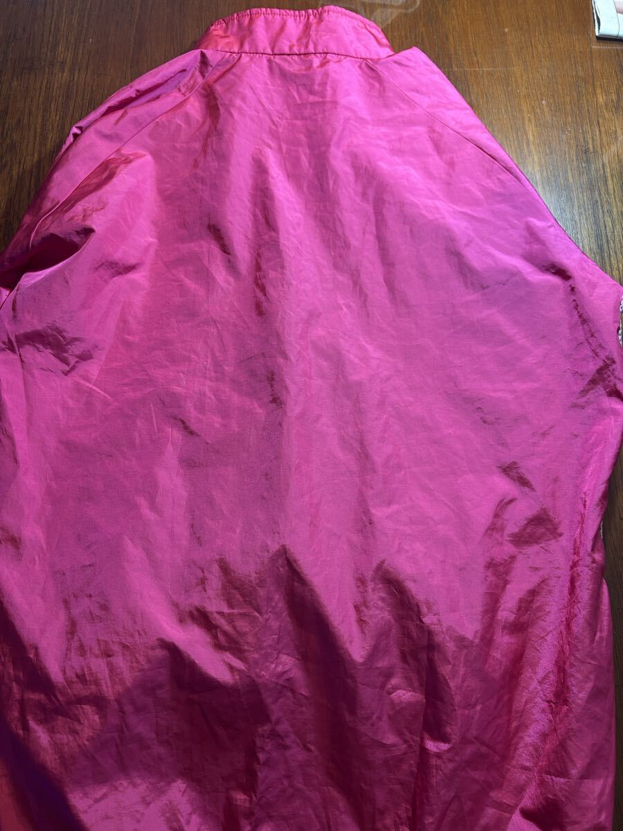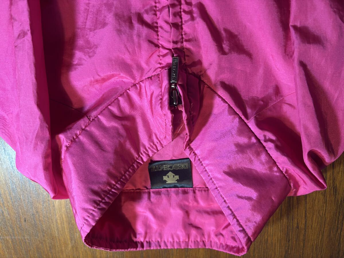 デサントの自転車用ウィンドブレーカーです。鮮やかなピンク色で安全面に貢献しそうです。かなり前から持っていましたが、ほとんど着る機会が無いので使ってくださる方に。穴やほつれ、オイルの汚れは見当たりませんが、腕の白い模様は薄れて消えかけています。中古につきノークレームノーリターンでお願いします。