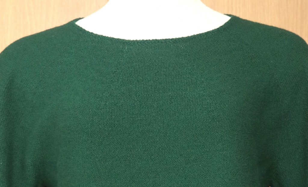 適度なハリとコシのある編み方になっているので、着られるだけでシルエットを美しく保ってくれるお品になっています。