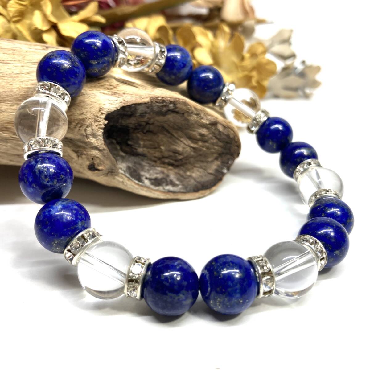ラピスラズリ&水晶 パワーストーン ブレスレット 天然石ブレス (シルバー) 10mm メンズ・レディース 開運 願望成就 魔よけ ☆