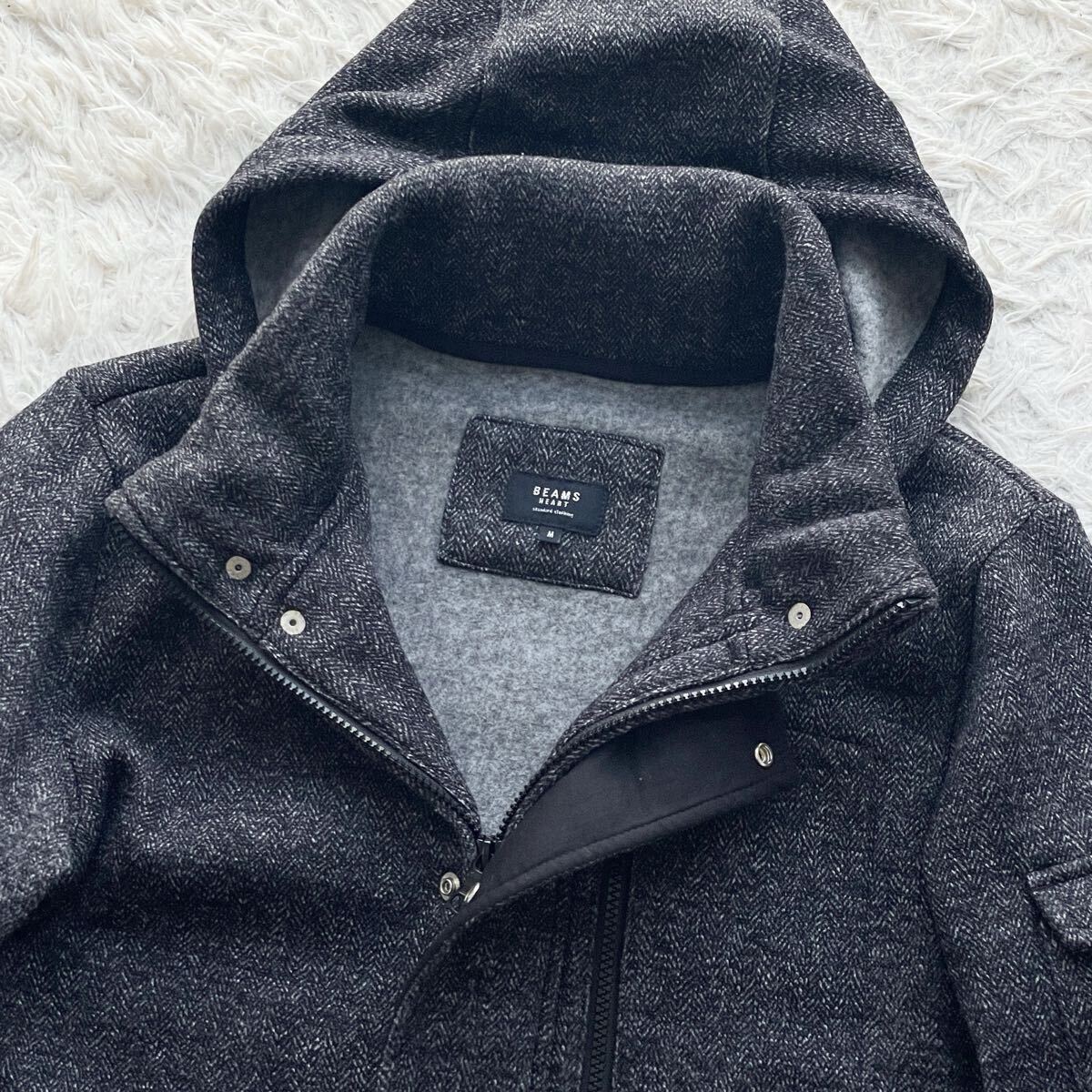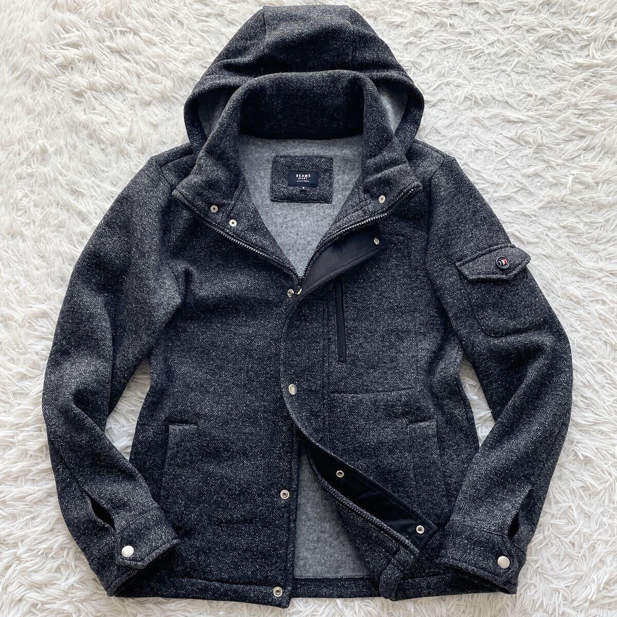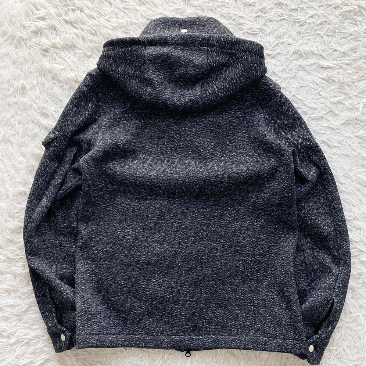 ヘリンボーン柄の収納可能フード付きフリースジャケットです。