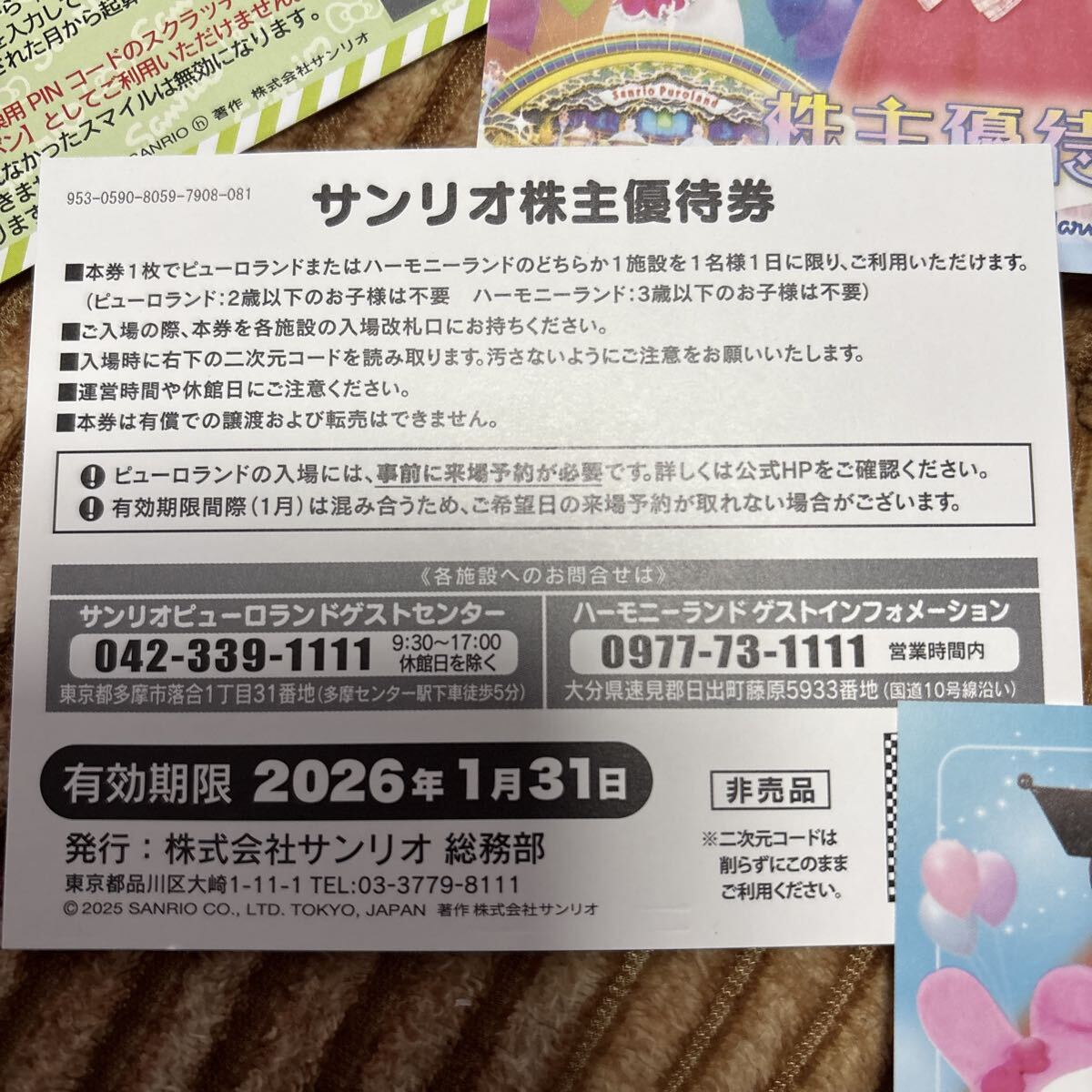 サンリオ優待券9枚と割引券3枚セットの出品です。